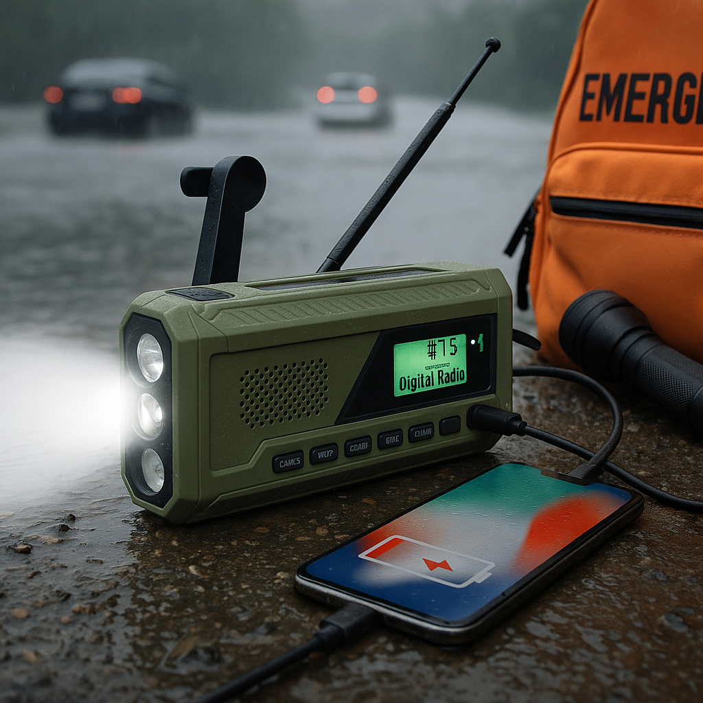Nødradio – DAB+/FM, Powerbank, lommelykt og sveiv